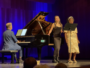 Auffallend war jedenfalls gerade in den Duetten, dass die beiden Stimmen der Sängerinnen unglaublich gut zusammenpassten, so dass man schon hinsehen musste um zu erkennen, wer gerade singt. Und Julius Drake muss ein Extra-Kompliment gebühren: Sich als Pianist so sicher durch verschiedenste Tonarten, Rhythmen und musikalischen Kontexten in kürzester Zeit fehlerfrei zu bewegen, dass zeigt den echten Profi!