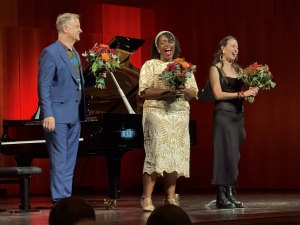 Julius Drake, Fleur Barron und Axelle Fanyo nach der Pause