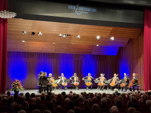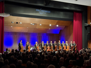 Ein Konzert mit den 12 Cellisten ist natürlich per se etwas Besonderes. Aber das Konzert dieser Formation zu diesem Zeitpunkt passte einfach ganz wunderbar. Spannend zu beobachten war der Spaß und gleichzeitig die Aufmerksamkeit innerhalb der Gruppe, das Aufeinander-Hören, kleine Gesten mit großer Wirkung. Als Zuhörer musste man manchmal etwas suchen, ob den- oder diejenigen zu finden, die gerade ein hervorstechendes Motiv spielten. Alles weitere zur Musik können Sie der hier anschließenden Kritik von Frau Fischer entnehmen.