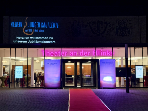 Das war eine dem Anlass entsprechende Geburtstagsparty, wie man sie sich zu seinem 150igsten Jubiläum doch wünschen möchte: Der Rote Teppich war ausgerollt – und das nicht nur für den Ehrengast Frau Silvia Breher, die Parlamentarische Staatssekretärin – und jeder, der wollte, konnte sich fühlen wie bei der Bienale oder der Oscar-Verleihung. Nach einigen Geburtstagsgrüßen und Ansprachen stand dann (genau wie es die Vorsitzende, Frau Grietje Oldigs-Nannen beschrieben hatte) die Musik im Mittelpunkt. Die Qualität der Musik und das Abonnement sind die tragenden Stützen des Vereins junger Kaufleute. Allen Abonnenten im Saal dürfte bewusst gewesen sein, dass die Einladung der Künstler in diesem Jubiläums-Jahr und in den folgenden Spielzeiten durch jeden einzelnen Beitrag im Abo möglich wird.